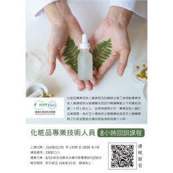 自辦-113 年「化粧品專業技術人員職前訓練班」